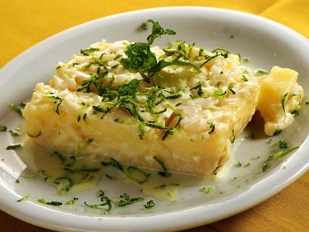 O restaurante de comida mineira apresenta uma sobremesa bem brasileira, com um toque de sofisticação: torta de coco com limão.
