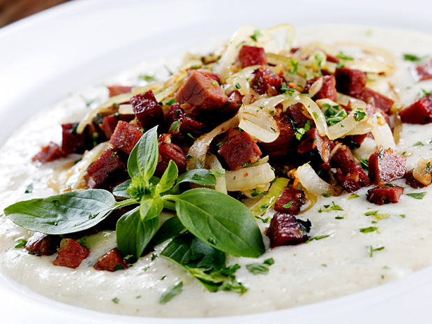 Famoso pela culinária típica brasileira, o restaurante Capim Santo serve como uma das opções de prato principal no jantar carne seca acebolada com pirão de leite.