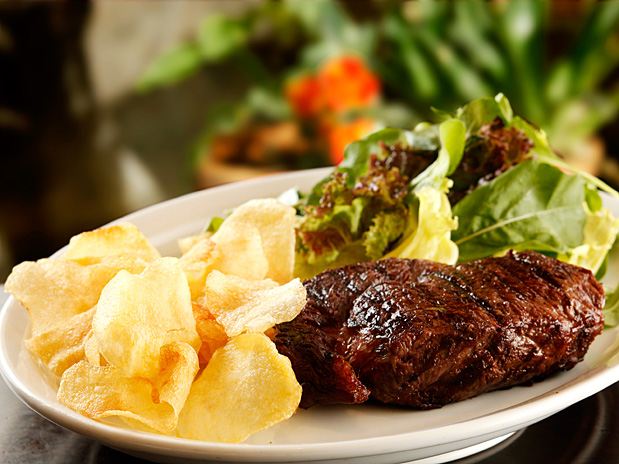 Restaurante típico argentino, o La Caballeriza serve como prato principal Ojo la caballeriza (carne bovina) com mix de folhas e batata espanhola
