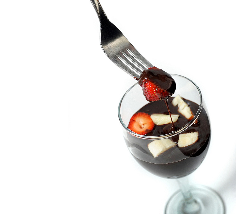 Em um recipiente, coloque o chocolate e o creme de avelã. Coloque no micro-ondas por aproximadamente 40 segundos ou até que o chocolate derreta. Misture os ingredientes derretidos. Em uma taça, colocar todas as frutas e por cima o chocolate derretido ainda quente. Sirva na hora.