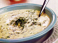 Limpe e lave o espinafre, separe somente as folhas e coloque-as numa panela. Tampe a panela e leve ao fogo até as folhas murcharem e ficarem macias. Retire do fogo, esprema as folhas para eliminar o excesso de líquido e pique-as finamente. Reserve. Leve ao fogo uma panela com a manteiga e a farinha de trigo e deixe dourar sem parar de mexer. Junte, aos poucos, o leite e cozinhe por mais 6 minutos, ou até obter um creme não muito encorpado. Misture o espinafre, o creme de leite e o sal. Assim que ferver, acerte o sal e retire do fogo.