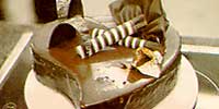 Pique o chocolate e derrame sobre ele o creme ainda quente. Deixe esfriar. Acrescente o chantilly batido, misture bem e leve para gelar. Para a cobertura, aqueça 800g de creme de leite e a manteiga. Junte o chocolate picado e deixe cozinhar mexendo sempre, por 2 a 3 min. Reserve. Ferva a água com o açúcar, o restante do creme de leite e a glicose. Quando ferver, junte o cacau em pó e deixe cozinhar por 4 min. Tire do fogo, acrescente a mistura de chocolate e leve para gelar. Desenforme a musse e cubra com o creme de chocolate. Decorar com raspas de chocolate.