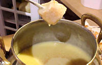 Ralar os queijos no ralo grosso e reservar. Esfregar o dente de alho na parte interna da panela escolhida para se preparar o fondue. (recomenda-se a panela apropriada com espiriteira para levar o fondue fervendo à mesa). Separe 4 colheres (sopa) do vinho e coloque o restante na panela, acrescente os queijos e leve ao fogão em fogo baixo mexendo a mistura sem parar até que os queijos estejam totalmente derretidos no vinho. Misture a maisena com o vinho branco reservado e despeje na panela, continue mexendo por 1 minuto até engrossar, tempere com pimenta do reino e uma pitada de noz moscada, despeje o Kirch e leve a panela ao aparelho de fondue. Sirva acompanhado de cubos de pão amanhecido.