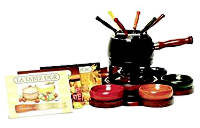 Corte a carne em cubos. Ponha numa travessa, salgue e apimente. Aqueça o óleo, junte a manteiga e aqueça bem. Despeje no réchaud e leve à mesa. Cada pessoa deverá fritar sua porção de carne e servir-se com os acompanhamentos e o molho de sua preferência.