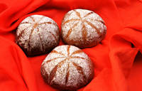 Peneire as farinhas e misture a todos os ingredientes. Sove bem e deixe crescer até dobrar de volume. Modele os pães e deixe crescer até dobrar de volume. Modele os pães e deixe crescer novamente até dobrar de volume. Leve para assar em forno quente. Se quiser, polvilhe com farinha de trigo.