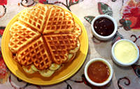 Bata as claras em neve com 1 xícara de açúcar. Reserve. Acrescente o restante do açúcar, as gemas e o leite. Adicione a farinha peneirada com o fermento em pó e misture bem. Por último, acrescente as claras em neve. unte a fôrma de waffle com óleo e leve ao fogo.
