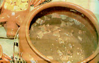 Escolha e lave o feijão. Deixe-o de molho em água fria de véspera. Lave bem as carnes para tirar o excesso de sal. Deixe-as também de molho em água fria, mas em vasilha separada, trocando a água de quando em quando. No dia seguinte, cozinhe em panelas separadas o feijão e as carnes. Quando o feijão estiver macio, refogue o alho e a cebola no óleo, junte 3 ou 4 colheradas de feijão, amasse, acrecente algumas colheradas do caldo do feijão e deixe ferver. Despeje em seguida na panela de feijão. Quando as carnes estiverem cozidas, despeje-as também na panela de feijão, que deve ser bem grande. Deixe ferver durante 15 ou 20 minutos, para tudo tomar gosto. Se gostar de louro, pode acrescentar uma folha. Prove o sal e, se preciso, acrescente. Como as carnes são salgadas, nem sempre é necessário pôr mais sal. Pode servir a feijoada em tigelas individuais, de barro ou cerâmica, colocando em cada uma algumas colheradas de feijão e as várias carnes cortadas em pedaços. Acompanha-se a feijoada com arroz branco, couve à mineira, farinha de mandioca torrada, laranjas meio ácidas, descascadas e cortadas em fatias, e o próprio molho. A bebida apropriada é a batida de limão ou caipirinha.