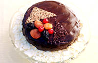 Na batedeira, bata a manteiga até ficar como um creme. Acrescente o leite condensado, o chocolate em pó, os ovos e o licor e continue batendo. Misture os biscoitos picados, as nozes e as passas. Despeje numa fôrma forrada com papel-alumínio e leve ao freezer por 2h. Para a cobertura, derreta o chocolate em banho-maria e misture com o creme de leite. Reserve. Retire a fôrma de freezer, desenforme e cubra com o creme de chocolate. Enfeite com nozes, cerejas e raspas de chocolate.