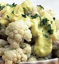 Coloque no liquidificador o iogurte, a cebolinha e o açafrão. Bata por 2 minutos, ou até ficar homogêneo. Retire do liquidificador, acerte o sal e cubra a couve-flor com o molho preparado. Se preferir, decore com cheiro-verde picado.
