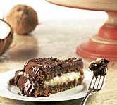 Montagem: retire a superfície e as laterais do bolo, parta ao meio e recheie uma das partes com o creme de coco. Disponha a outra parte do bolo por cima e espalhe o chocolate derretido. Em seguida, polvilhe com o chocolate granulado.