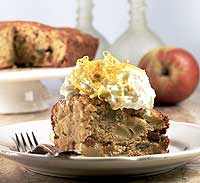Unte com a manteiga reservada uma fôrma quadrada de 19 cm e enfarinhe. Despeje a massa e leve para assar em forno médio (180°C), preaquecido, por 40 minutos, ou até que enfiando um palito, ele saia limpo. Desenforme o bolo morno e decore com o chantilly e as tiras de limão.