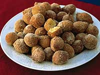 Em seguida, passe os bolinhos no açúcar e na canela e sirva.