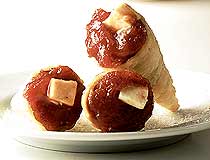 Massa: coloque em uma tigela grande a farinha de trigo, abra uma cavidade no centro e despeje o sal dissolvido em 1/2 xícara (chá) de água morna, a gema, o óleo, a vodca e a manteiga (reservando 2 colheres de sopa). Amasse bem com a ponta dos dedos até formar uma massa homogênea. Se necessário, acrescente mais farinha de trigo. Forme uma bola com a massa, cubra com filme plástico e deixe descansar por 30 minutos. Em uma superfície lisa e enfarinhada, abra a massa até ficar bem fina, corte 13 tiras com 5 cm de largura e 15 cm de comprimento. Pincele com a manteiga reservada 13 forminhas de alumínio médias, em formato de cone, próprias para canudinho.