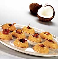 Distribua a massa em 15 forminhas de papel e arrume-as dentro de fôrmas de alumínio para empada. Asse em forno médio, preaquecido, por 45 minutos, ou até que enfiando um palito, ele saia limpo. Retire. Para o preparo da calda, coloque em uma panela o açúcar e 1/2 xícara (chá) de água. Leve ao fogo, sem parar de mexer, até o açúcar derreter. Pare de mexer e cozinhe por mais 5 minutos, ou até obter uma calda de fio meio grosso. Retire do fogo e regue as queijadinhas ainda quentes. Se preferir, polvilhe as queijadinhas com coco em lascas ou com canela em pó.