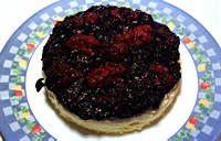 Bata as claras em neve. Reserve. Em liqüidificador, bata os demais ingredientes até obter uma consistência cremosa e homogênea. Misture as claras. Pré-aqueça o forno, coloque a massa em fôrma de fundo removível e leve para assar em forno médio por cerca de 45 min ou até que a massa esteja cozida. Deixe esfriar e decore com a compota de frutas vermelhas.