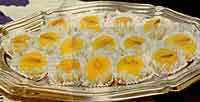 Coloque o açúcar e 1 e 1/2 xícara de água para ferver e faça um caldo em ponto de fio brando (se usar termômetro, a temperatura é de 105 graus). Bata as gemas com a água e despeje aos poucos na calda, mexendo sempre. Coe. Separe 2 xícaras dessa mistura (calda com gemas) e misture com as nozes. Reserve. Com o restante das gemas colocadas na calda preencha 2/3 das forminhas untadas com uma mistura de karo e manteiga e leve ao forno em banho-maria por 10 minutos. Quando a mistura atingir a consistência de pudim, coloque por cima a mistura de nozes e leve ao forno por mais 10 minutos.