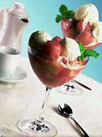 Descasque as bananas e pique-as em rodelas grossas. Reserve. Coloque em uma panela os sucos de laranja e de limão, o açúcar, a canela e o cravo. Leve ao fogo e, assim que a calda começar a encorpar, junte as bananas e reduza o fogo. Deixe cozinhar por 25 minutos, ou até as bananas ficarem macias e a calda levemente avermelhada. Durante o cozimento, adicione água, aos poucos, à medida que a calda ficar muito grossa. Se preferir, decore com hortelã. Sirva com sorvete ou chantilly.