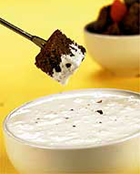 Coloque o marshmallow em uma tigela refratária. Leve ao fogo em banho-maria por 3 minutos, ou até a água ferver. Retire do fogo, transfira para a tigela do fondue e coloque sobre o fogareiro. De preferência, opte pelo fogareiro que use vela como fonte de calor. Leve à mesa.