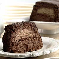 Montagem: forre com um filme plástico o fundo e as laterais de uma fôrma para bolo retangular e alta, com capacidade para 1,1 litro. Distribua no fundo e nas laterais o bolo assado, reservando 2 retângulos do tamanho da fôrma. Espalhe a musse de chocolate meio amargo, um retângulo reservado de massa e a outra musse. Cubra com o outro retângulo e leve à geladeira por 1 hora, ou até endurecer. Desenforme e espalhe a cobertura fria. Sirva a seguir.
