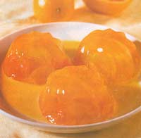 Coloque a gelatina para amolocer em água fria. Coloque em uma panela pequena a casca de uma laranja, de 2 tangerinas e do limão. Junte o açúcar e 150 ml de água. Deixe ferver, coe e junte a gelatina amolecida e espremida. Deixe derreter e, a seguir, junte o suco de limão coado e 100 ml de água fria. Despeje 1 cm desse líquido em 4 forminhas com capacidade para 200 ml cada uma e deixe endurecer na geladeira. Descasque a grapefruit, as laranjas, as tangerinas, retirando também a parte branca. Corte-as em pedaços, junte-as ao líquido restante e misture bem. Despeje sobre a gelatina endurecida e deixe na geladeira por cerca de 2 horas. Creme: bata as gemas com o mel em uma panela pequena. Em seguida, junte o leite e a baunilha, leve ao fogo até encorpar. Desenforme os aspics sobre um prato forrado com creme e sirva.