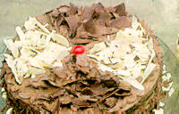 Na batedeira, bata o açúcar com a manteiga até ficar cremoso. Acrescente as gemas e continue batendo até obter um creme claro. Adicione a farinha de trigo, o chocolate, o fermento e a maisena peneirados. Acrescente o leite e o licor de cacau. Reserve. Bata as claras em neve e misture à massa, delicadamente. Leva para assar em 2 fôrmas untadas e enfarinhadas. Misture os ingredientes do 1º recheio e leve ao fogo, mexendo sempre, até engrossar. Reserve. Misture os ingredientes do 2º recheio e leve ao fogo, mexendo sempre, até engrossar. Reserve. Monte a torta, alternando os discos da massa com os recheios. Misture o restante dos dois cremes e utilize como cobertura. Polvilhe raspas de chocolate preto e branco.