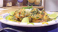 Limpe os camarões mantendo o rabinho intacto. Prepare uma mistura com a farinha de trigo, sal, pimenta-do-reino e páprica, coloque em um saco plástico e reserve. Coloque metade do azeite em uma frigideira e leve ao fogo forte. Enxugue bem os camarões e coloque-os no saco plástico com a farinha temperada, feche a boca do saco e chacoalhe bastante para que a farinha de trigo envolva todos os camarões, retire os camarões eliminando o excesso de farinha e coloque-os no azeite aquecido, 4 a 4 na frigideira. Doure 2 minutos de cada lado e retire mantendo-os aquecidos, termine os camarões. Acrescente o azeite restante à frigideira aqueça e coloque o alho picado, refogue com atenção pois o alho não deve dourar demais (pode ficar amargo). Coloque novamente os camarões na frigideira e regue com o suco de limão, salpique com a salsinha picada e se necessário acerte o sal do molho. Sirva com arroz branco ou legumes grelhados