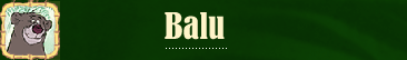 Biografia: Balu é mais feliz quando não está fazendo nada! Dormindo sob o sol, comendo o quê e quando quer e curtindo a selva com seu pequeno amigo Mogli. Embora Baguera chame-o de o "incorrigível malandrão da floresta", Balu sabe que "somente o necessário" é tudo de que precisa e que a vida sempre lhe dará o que quiser. Para Balu, a vida de urso é a melhor coisa que existe e está louco para compartilhar sua filosofia da selva com Mogli. Alguns o consideram preguiçoso, mas Balu compensa isso com sua personalidade alegre e positiva. Todo mundo gosta do Balu e ele também gosta de todos. Bom, talvez com exceção de Shere Khan!