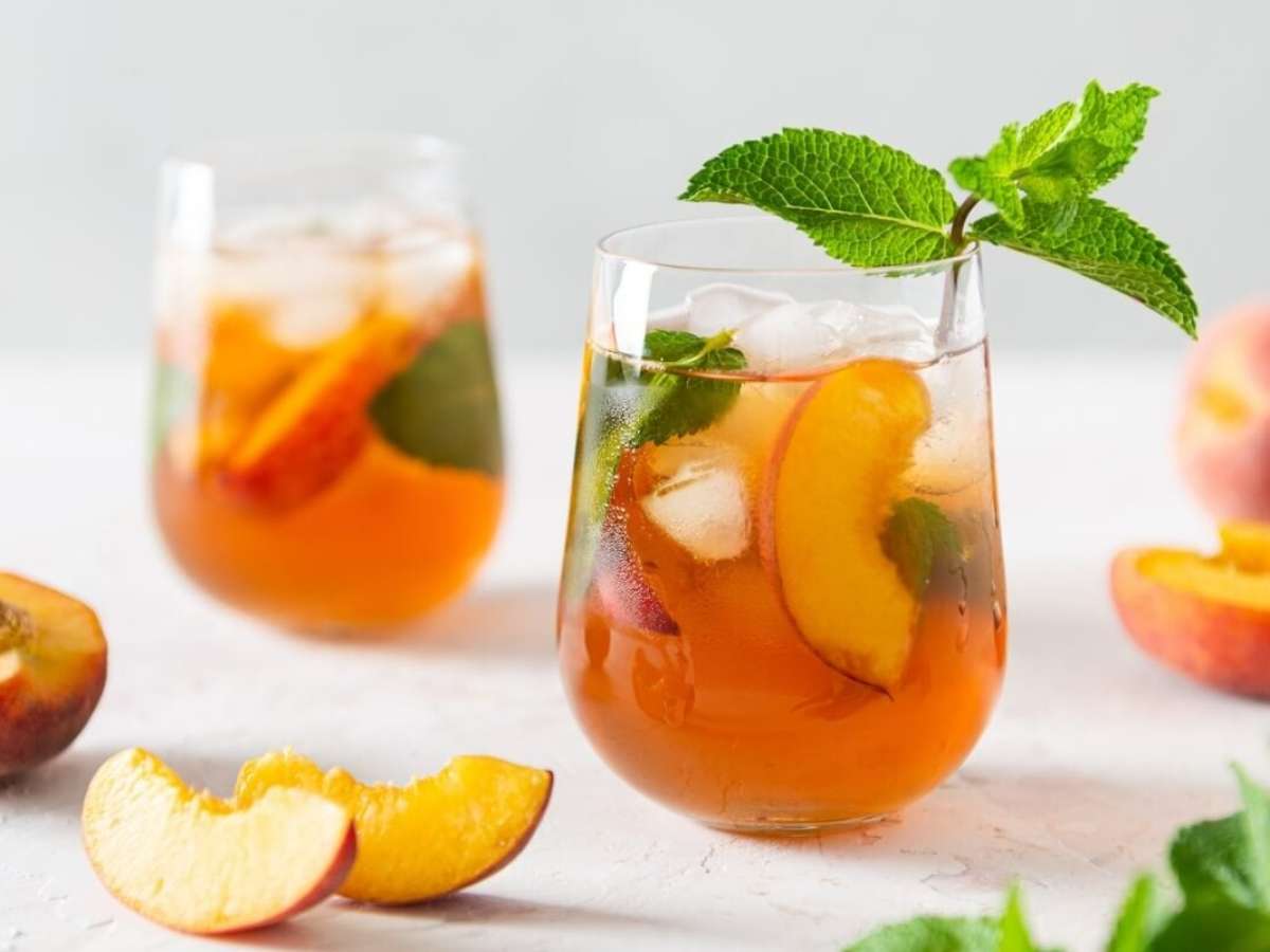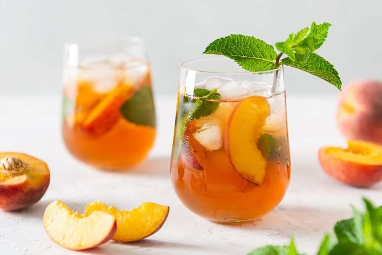 Dica: sirva decorado com folhas de hortelã e fatias de pêssego.