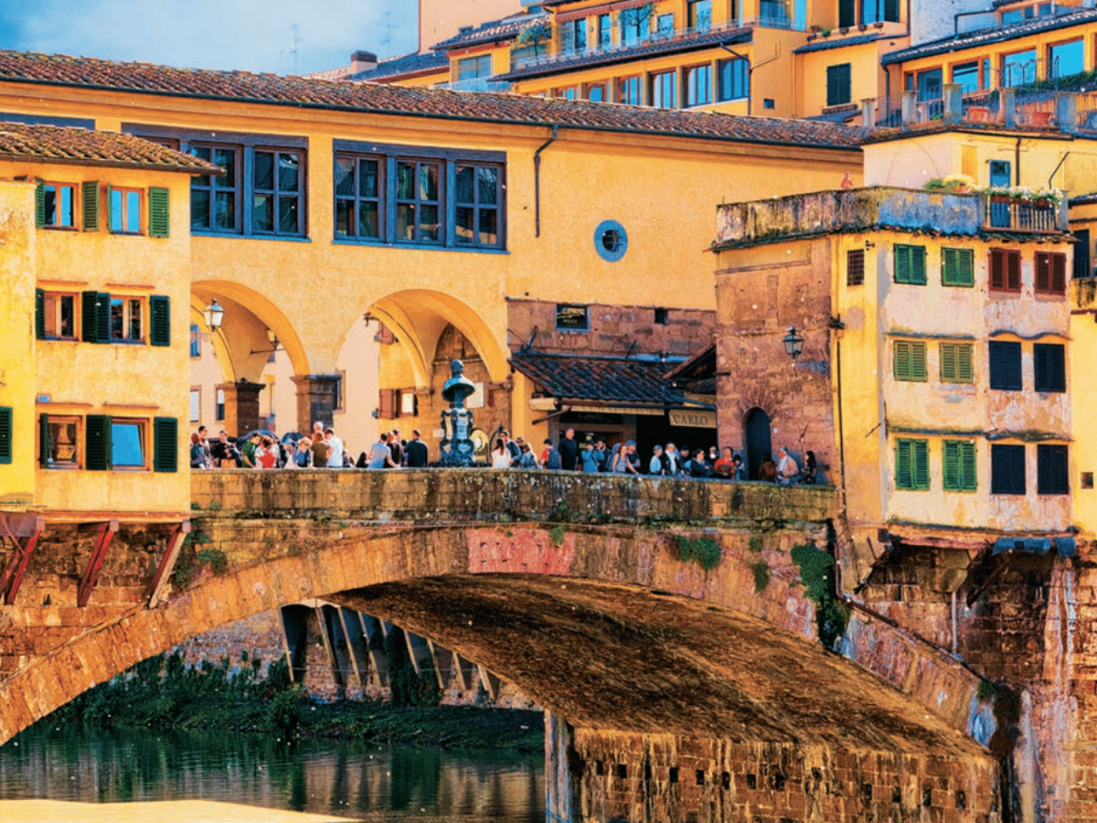 Em um passeio pelo Rio Arno, que atravessa a cidade, você irá passar pela Ponte Vecchio, onde estão lojas históricas de ourives. Também passará pelo corredor desenhado por Vasari, que ligava os edifícios na margem direita com o Palácio Pitti, na outra margem, e que era utilizado pelos Médici.