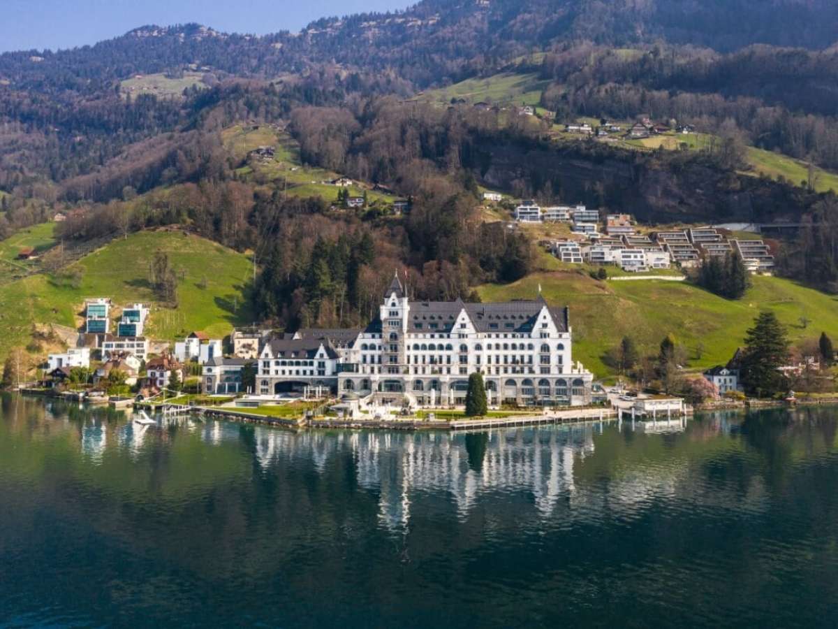 O hotel fica às margens do lago Lucerna e aos pés da famosa montanha Rigi, a cerca de uma hora de barco da cidade de Lucerna. O serviço é impecável e oferece vários mimos aos hóspedes. Os quartos são modernos, espaçosos e confortáveis. O restaurante Prisma tem uma estrela Michelin. Mas o melhor de tudo é a piscina aquecida de borda infinita sobre as águas do lago.