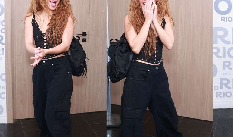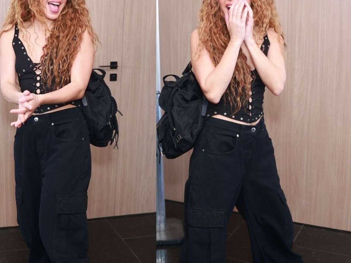 A Loba chegou no Brasil! Shakira usa aerolook all black com cintura baixa e tênis com salto no RJ. Fotos!