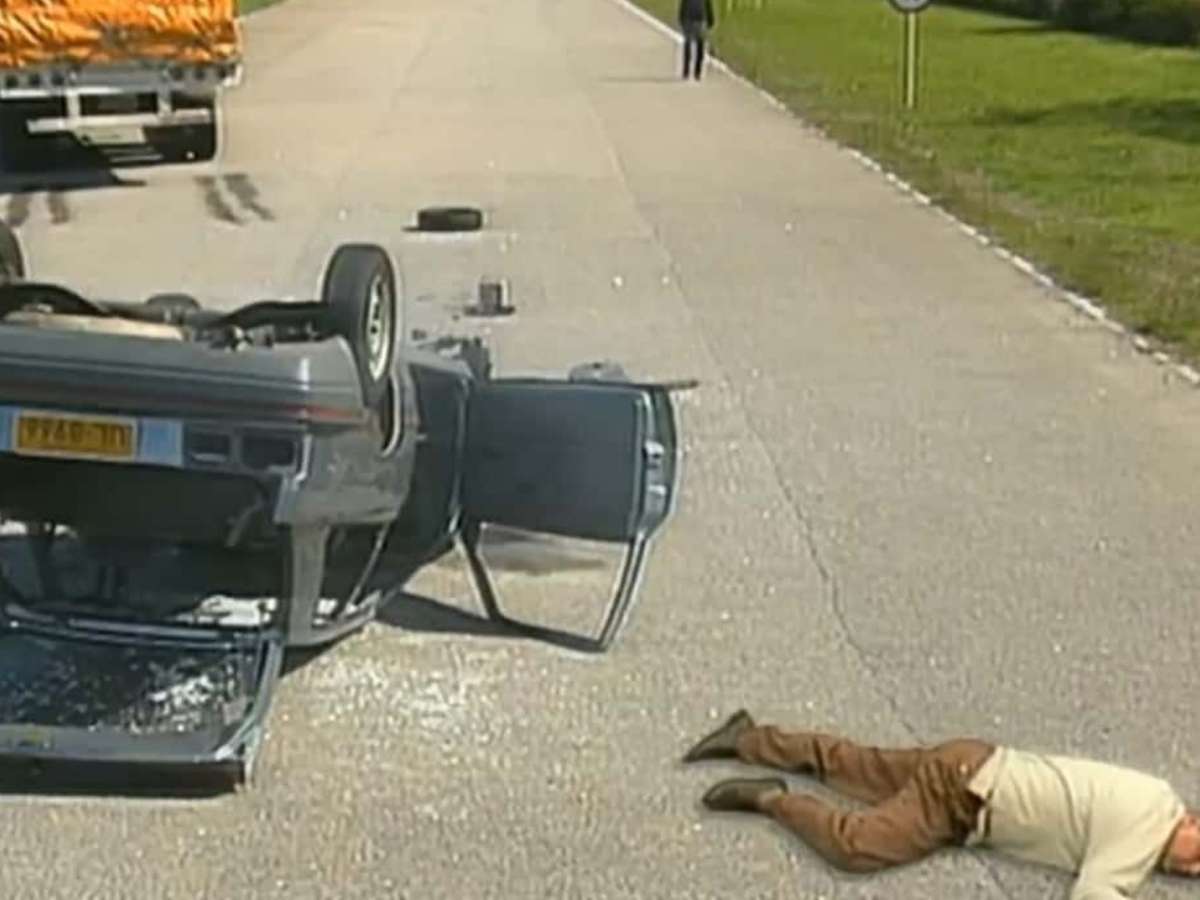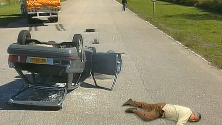 Alberto (Cláudio Cavalcante) chega ao local do acidente e fica arrasado ao constatar que o amigo se foi.
