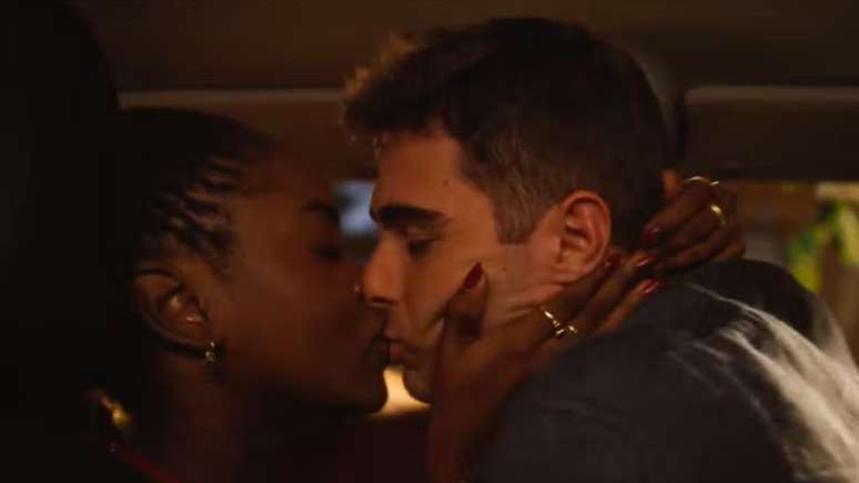 Isso porque Leo (Clara Moneke) e Davi (Rafael Vitti) se entregam à paixão dentro do carro, estacionado em frente à mansão dos Boaz.