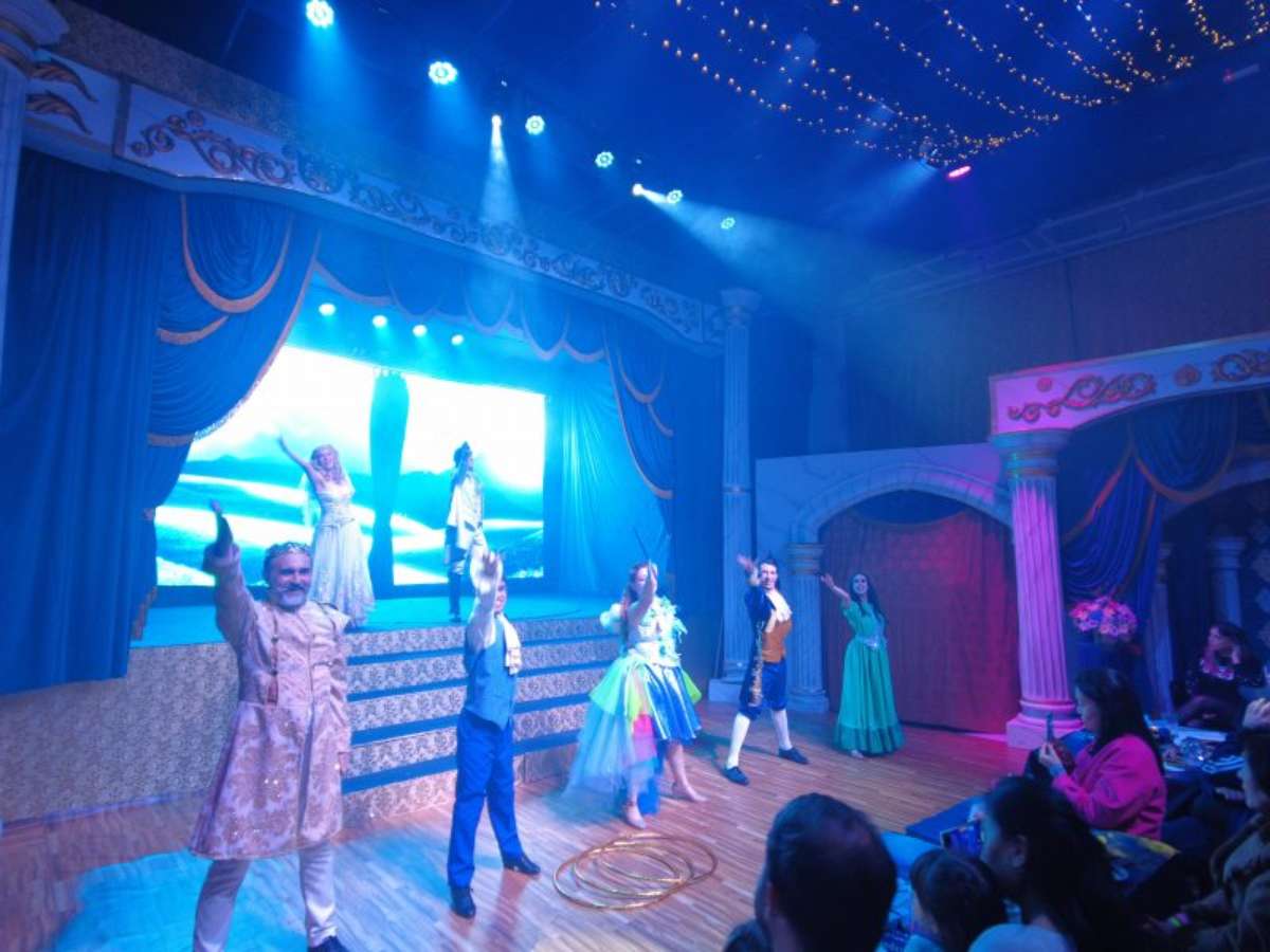 Após a recepção pelos personagens caracterizados, os visitantes serão convidados ao salão real, onde o banquete irá acontecer. Depois de se sentarem e realizarem seus primeiros pedidos - o melhor momento para fazer o pedido ao garçom é logo ao chegar, fica a dica! - , o público já começará a assistir a primeira parte do show, com acrobatas e mágicos entretendo a plateia.