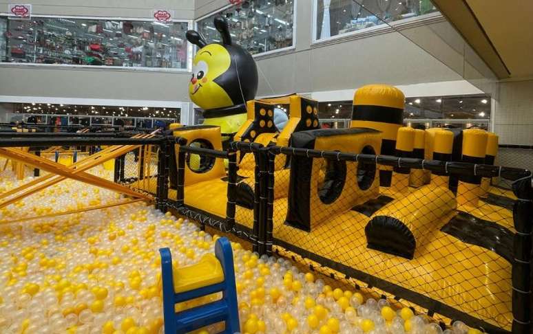 A atração ocorre no Shopping Aricanduva e conta com uma piscina de bolinha gigante, cama elástica, tapetes interativos e área kids, com gangorras e mesinhas para as crianças brincarem de pintar.