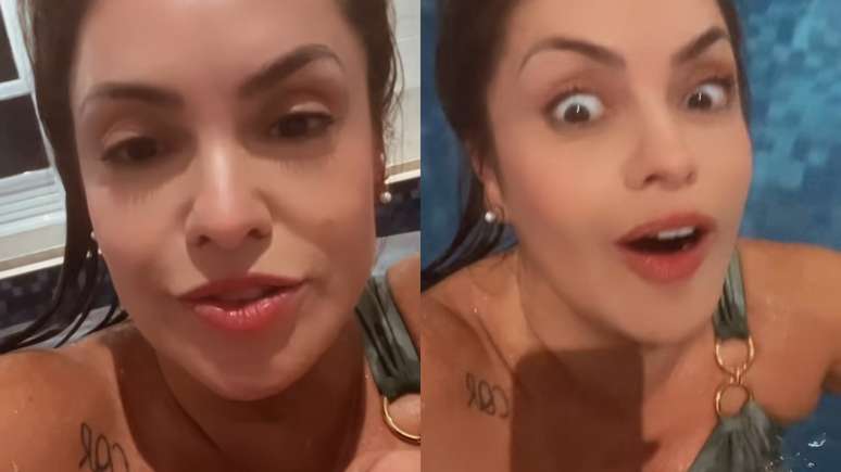 "Conhece a loira do banheiro? Agora toma cuidado que tem a mulher da piscina", brincou Renata em um vídeo publicado na madrugada desta sexta-feira, 14.