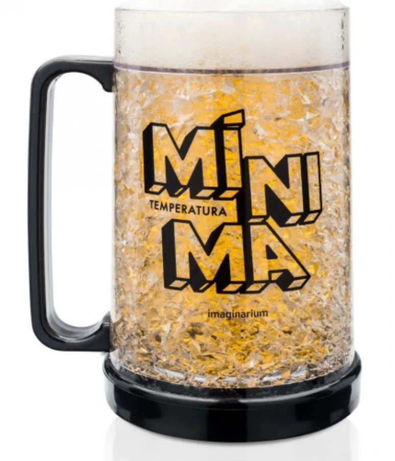 Alerta de temperatura mínima! A caneca congelável aparenta estar sempre cheia, por conta do líquido amarelo interno (que inclusive, mantém a cerveja super gelada). Na Imaginarium por R$ 59,90.