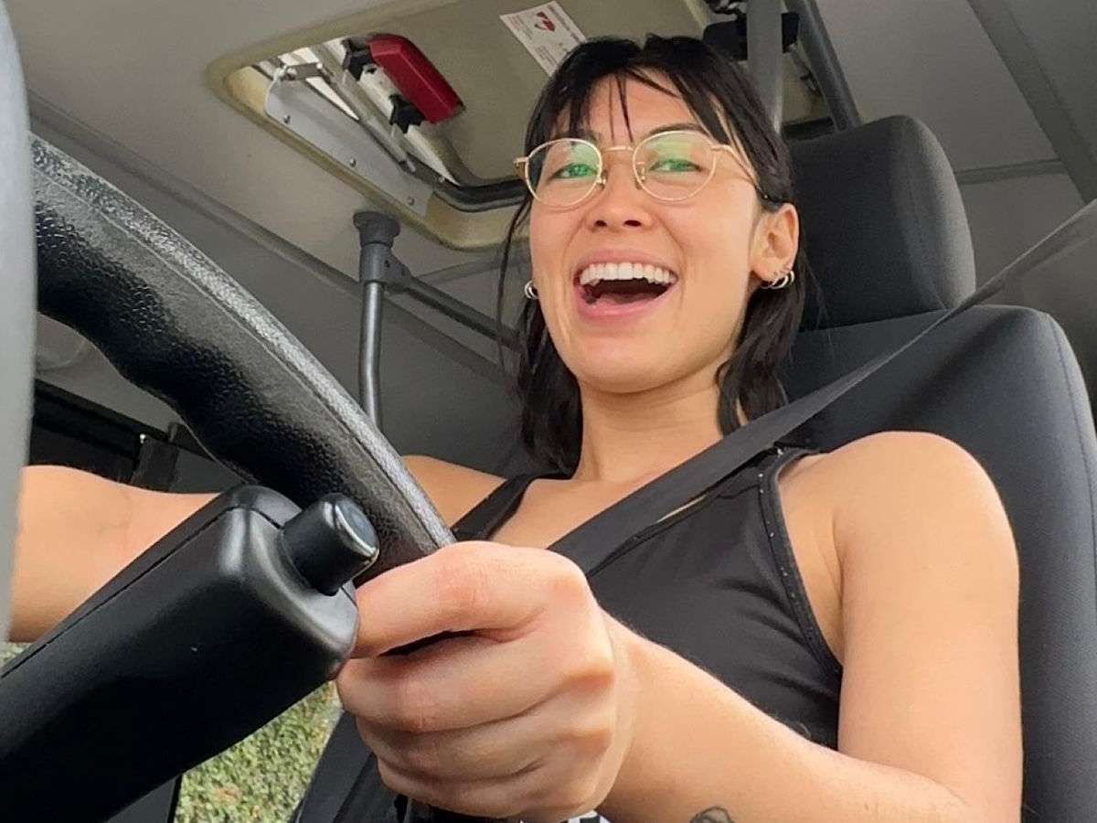 "Foi muito divertido tirar a carteira D. Achei que seria mais difícil, mas como já dirijo carro há 12 anos foi muito mais fácil do que eu imaginava. A diferença maior é o tamanho, mas depois de um dia de aula você já acostuma com a dimensão da coisa e tudo flui", declara.
