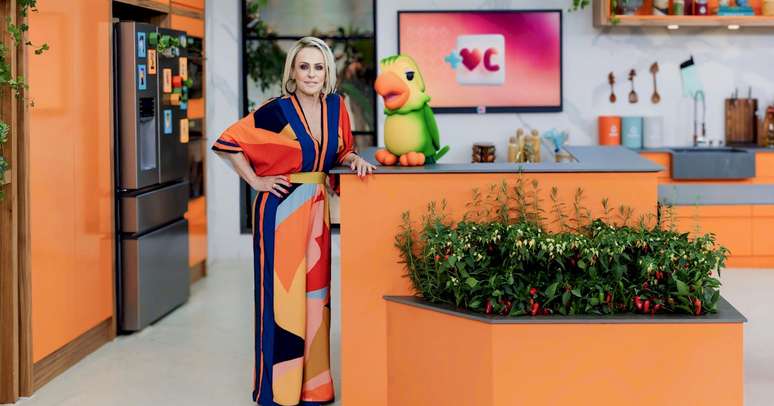 No cenário, cores vibrantes receberam a apresentadora. "Estávamos com a mesma cozinha há dois anos, e sentíamos que precisávamos renovar o espaço para o nosso público. Sempre nos mantemos antenados à tendências de decoração para escolher materiais, revestimentos e cores. Optamos pelo cenoura, seguindo as variações de tons em voga neste ano", explica a diretora geral do 'Mais Você', Viviane De Marco.