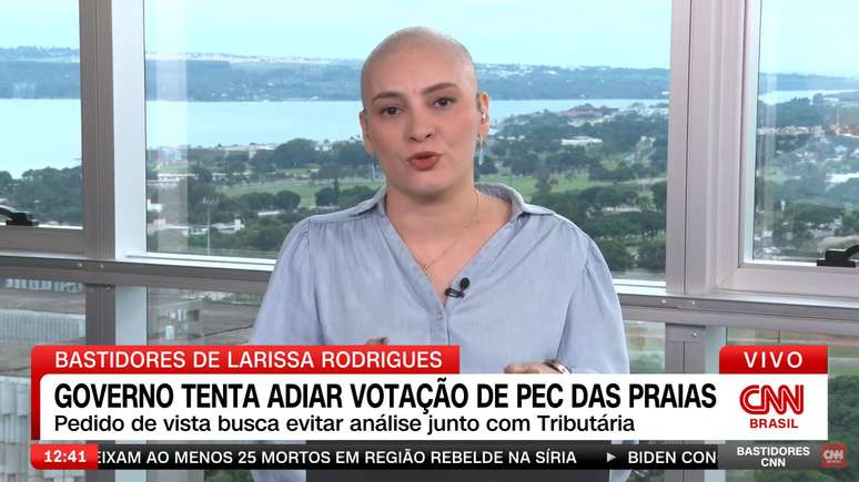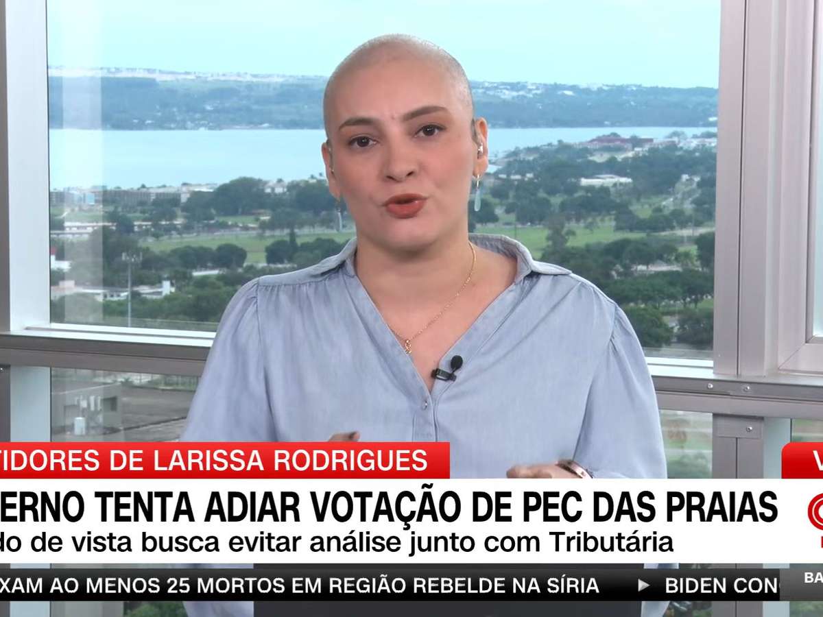Nesta segunda-feira (2), Larissa Rodrigues retornou para a programação ao vivo da CNN Brasil. A jornalista participou do programa Bastidores CNN para comentar sobre a tentativa do Governo Federal de adiar a PEC das praias. "É bom estar de volta. Para quem não sabe, eu estou tratamento um câncer de mama. Fiquei um tempo afastada, mas estamos aqui seguindo com a vida", explicou.