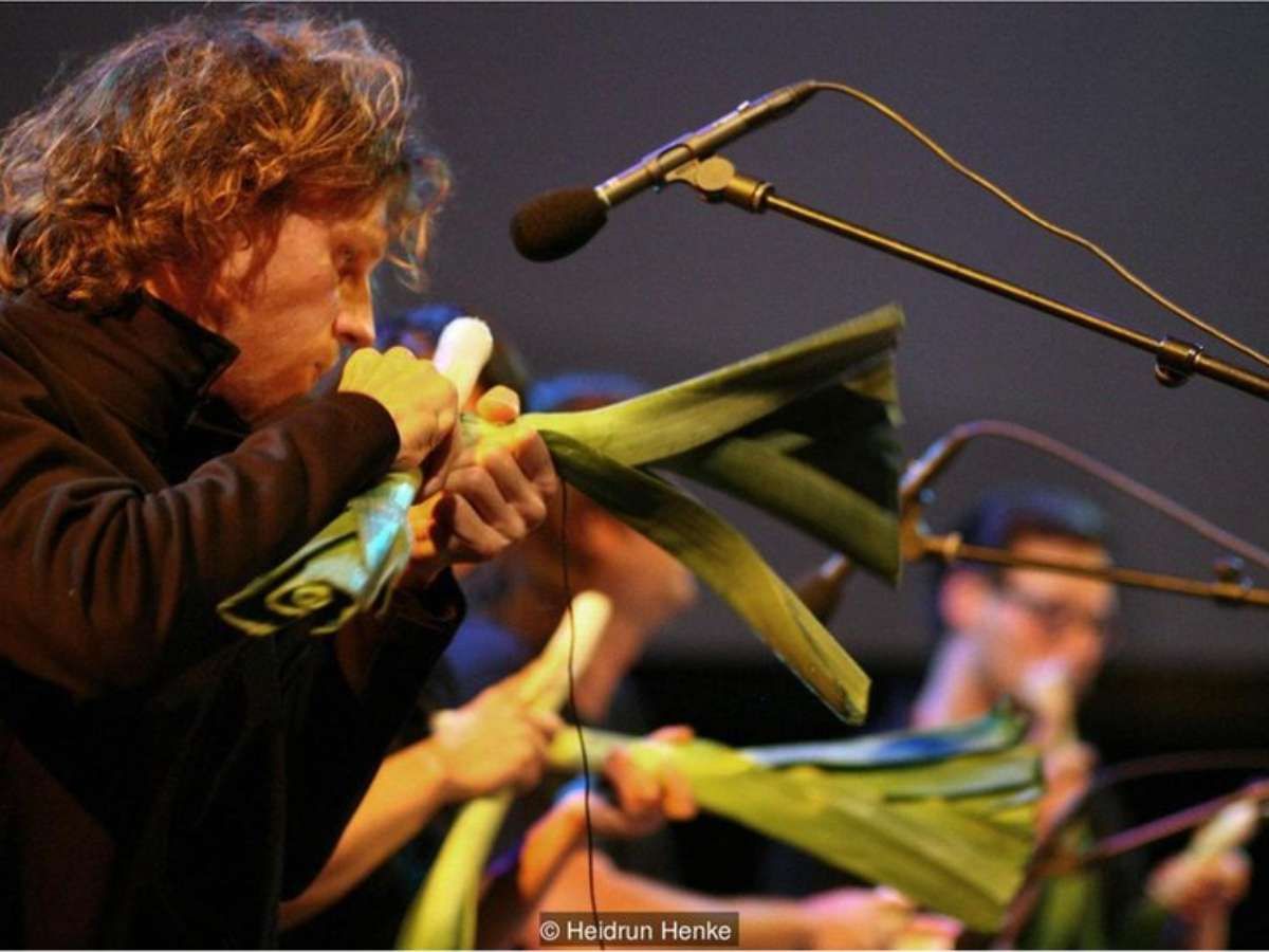 A orquestra inventou mais de 150 instrumentos ao longo dos anos. Alguns não demandam tanto trabalho: esmagar cebola seca com o punho lembra o som de uma tempestade, bater em uma abóbora com a palma da mão soa como um bumbo e esfregar dois alho-poró um no outro gera um barulho estridente.
