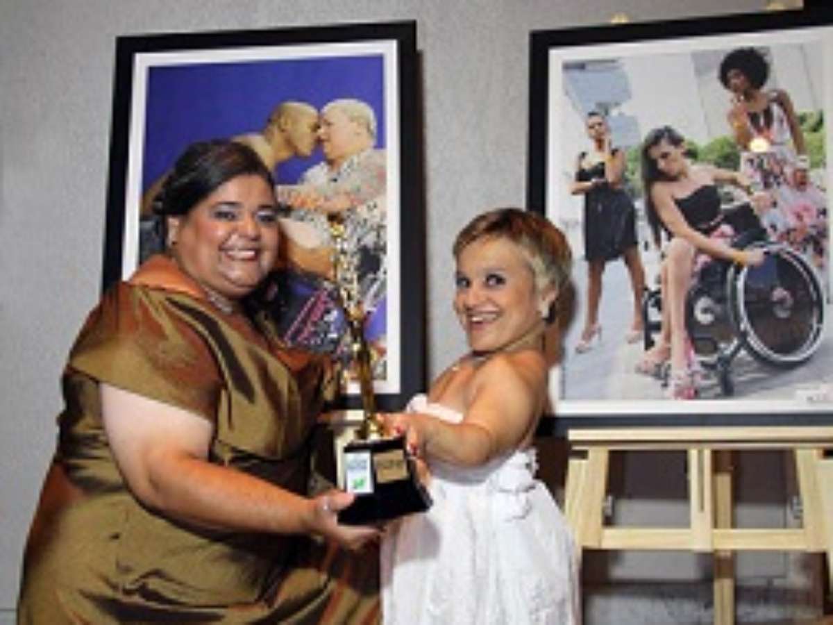 A fotógrafa Kica de Castro, ao lado de Priscila Menucci, em homenagem ao Dia Internacional da Mulher de 2013. A agência Kica de Castro Fotografia trabalha desde 2007 com modelos com algum tipo de deficiência