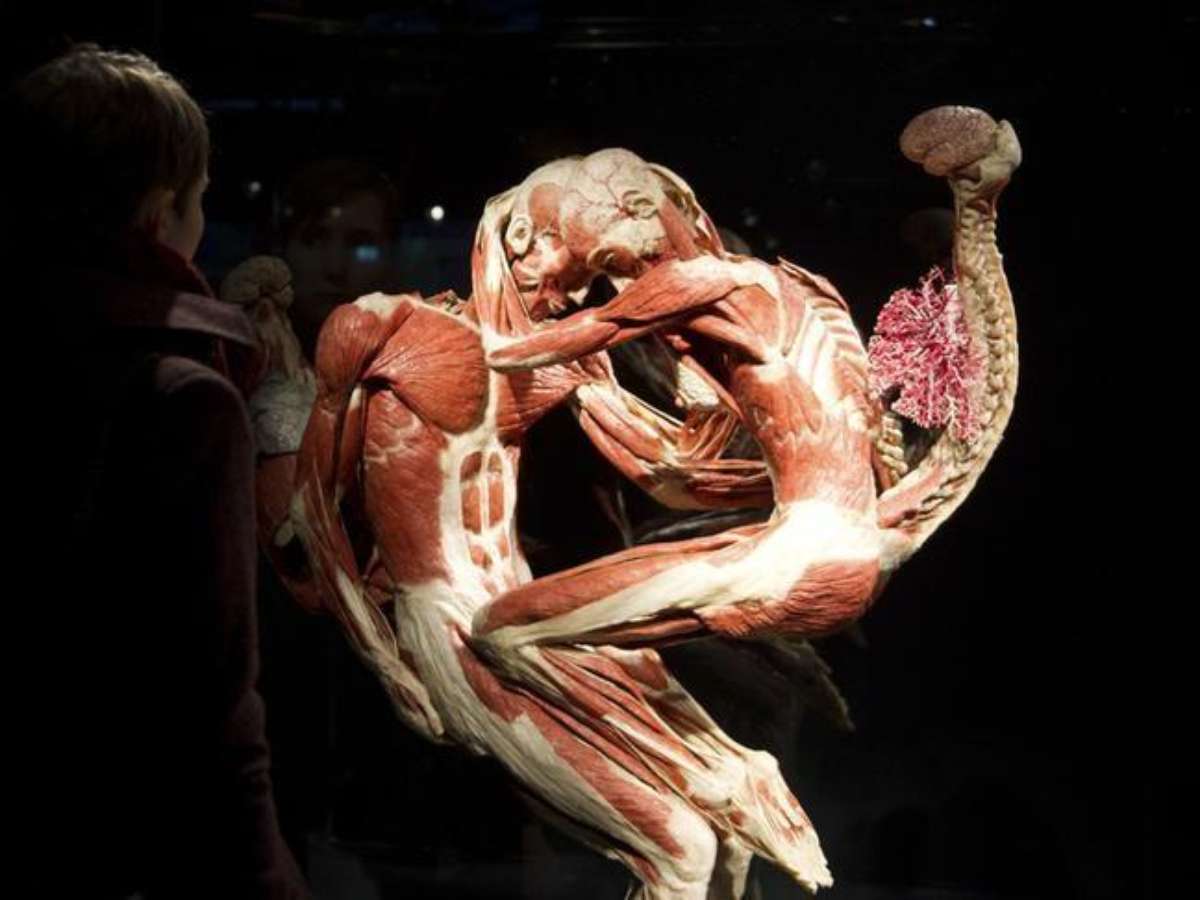 O projeto do anatomista alemão Gunther von Hagens e sua mulher, Angelina Whalley, exibe corpos que receberam silicone e resina, em um processo conhecido como "plastinação", inventado por Von Hagens.