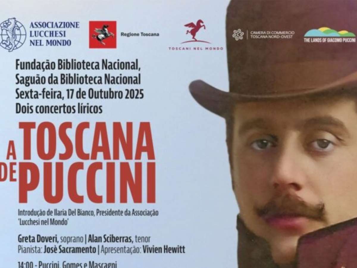 Com entrada gratuita, o evento "A Toscana de Puccini" reunirá renomados nomes da música lírica: a soprano Greta Doveri, o tenor Alan Sciberras e o pianista José Sacramento, a partir das 14h (horário local). A apresentação será conduzida pela diretora de óperas Vivien Hewitt.