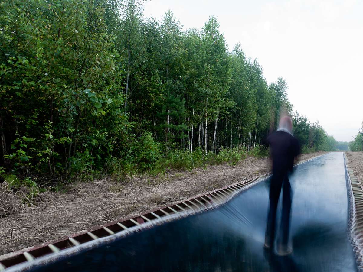 Um escritório de arquitetura da Estônia instalou uma cama elástica de quase 52 metros no meio de uma floresta russa.A passarela de borracha preta foi instalada pelo estúdio Salto como parte de um conhecido festival de artes da Rússia, a Aschstoyanie 2012.