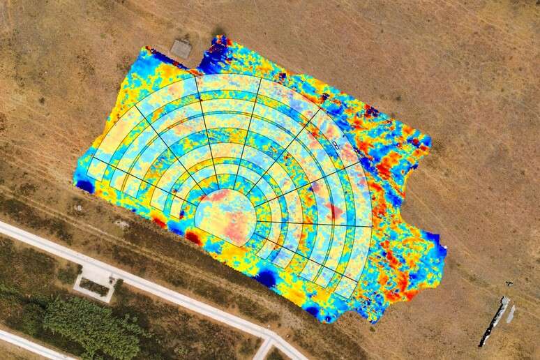 Após extensos levantamentos, incluindo fotografias aéreas, imagens de drones e uma análise geofísica conduzida pela Universidade da Basilicata, os arqueólogos creem cada vez mais na provável presença de um palco cênico.