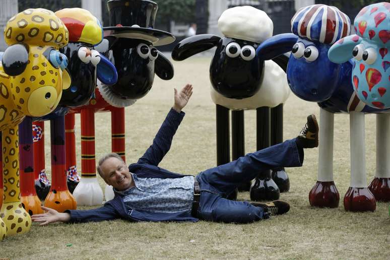 Nick Park, criador de Wallace & Gromit, posou para fotógrafos nesta sexta-feira (8) em frente à seis esculturas de sua personagem, a ovelha Shaun, em Londres.