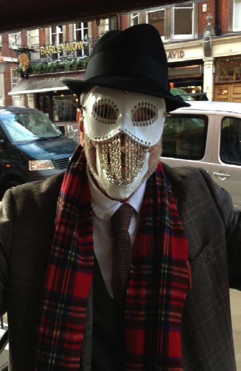 Para mostrar seu apoio ao projeto literário do brasileiro, o britânico, que já foi premiado com a Ordem do Império Britânico pela Rainha Elizabeth II, vestiu a máscara, que é característica principal do misterioso perfil.