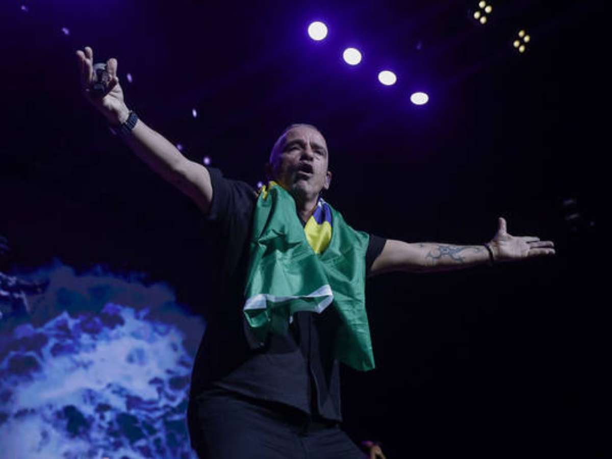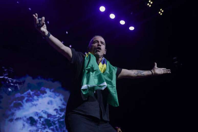 "Eu não falo muito português porque eu falo com meu coração e a voz", declarou Ramazzotti, que carregou a bandeira do Brasil diversas vezes pelo palco.