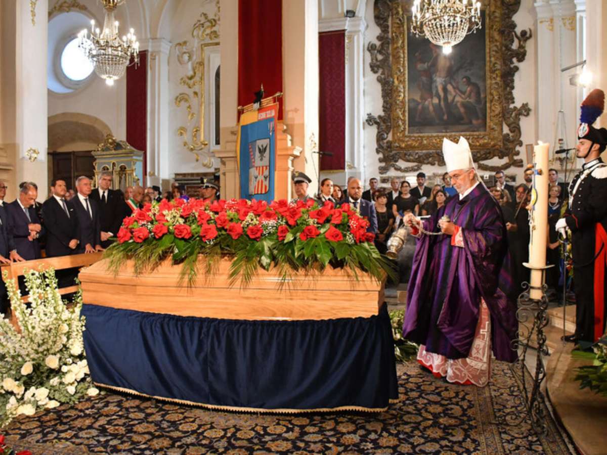A cerimônia de despedida foi transmitida ao vivo pelas emissoras italianas e acompanhada em telões instalado do lado de fora da igreja por diversas pessoas. Após o funeral, o caixão foi transportado para o cemitério de Militello para o sepultamento na capela da família de Baudo.